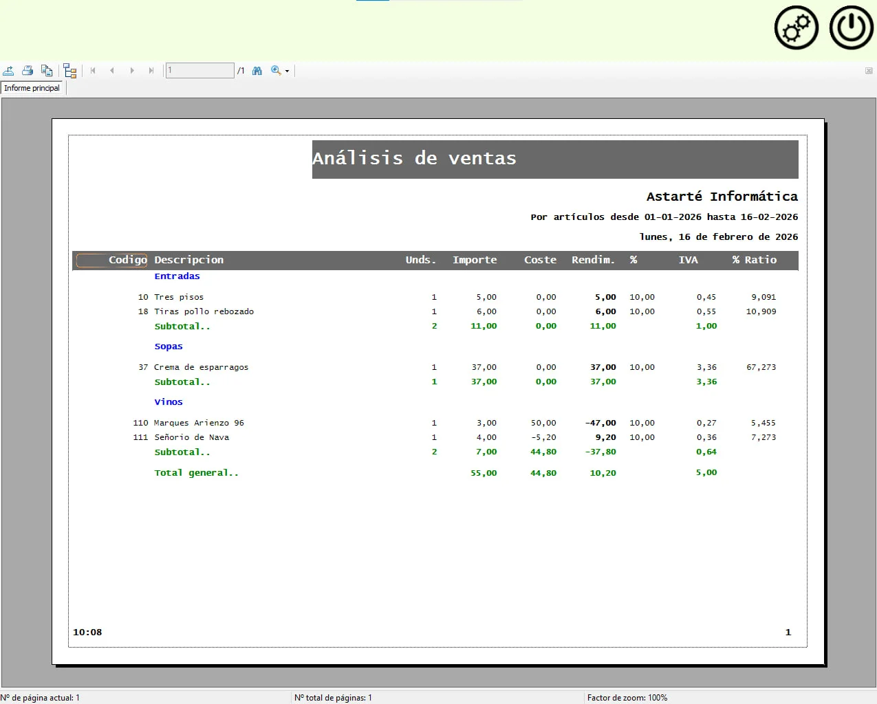Genere informes de ventas, por ejemplo los platos vendidos así como la información sobre clientes y sus ventas, también valorar el rendimiento de su restaurante por productos o por familias o ver las ventas realizadas a los mejores clientes.